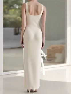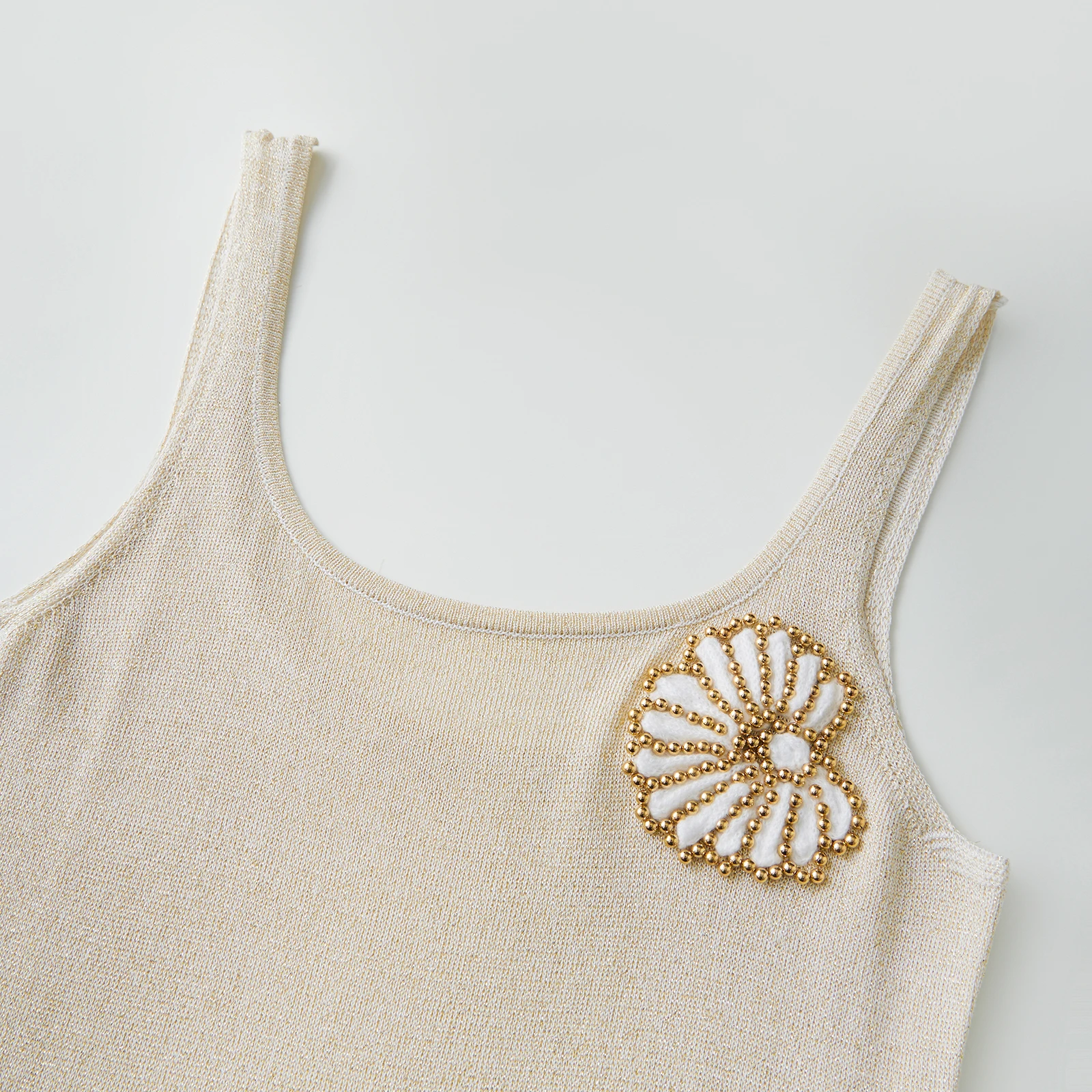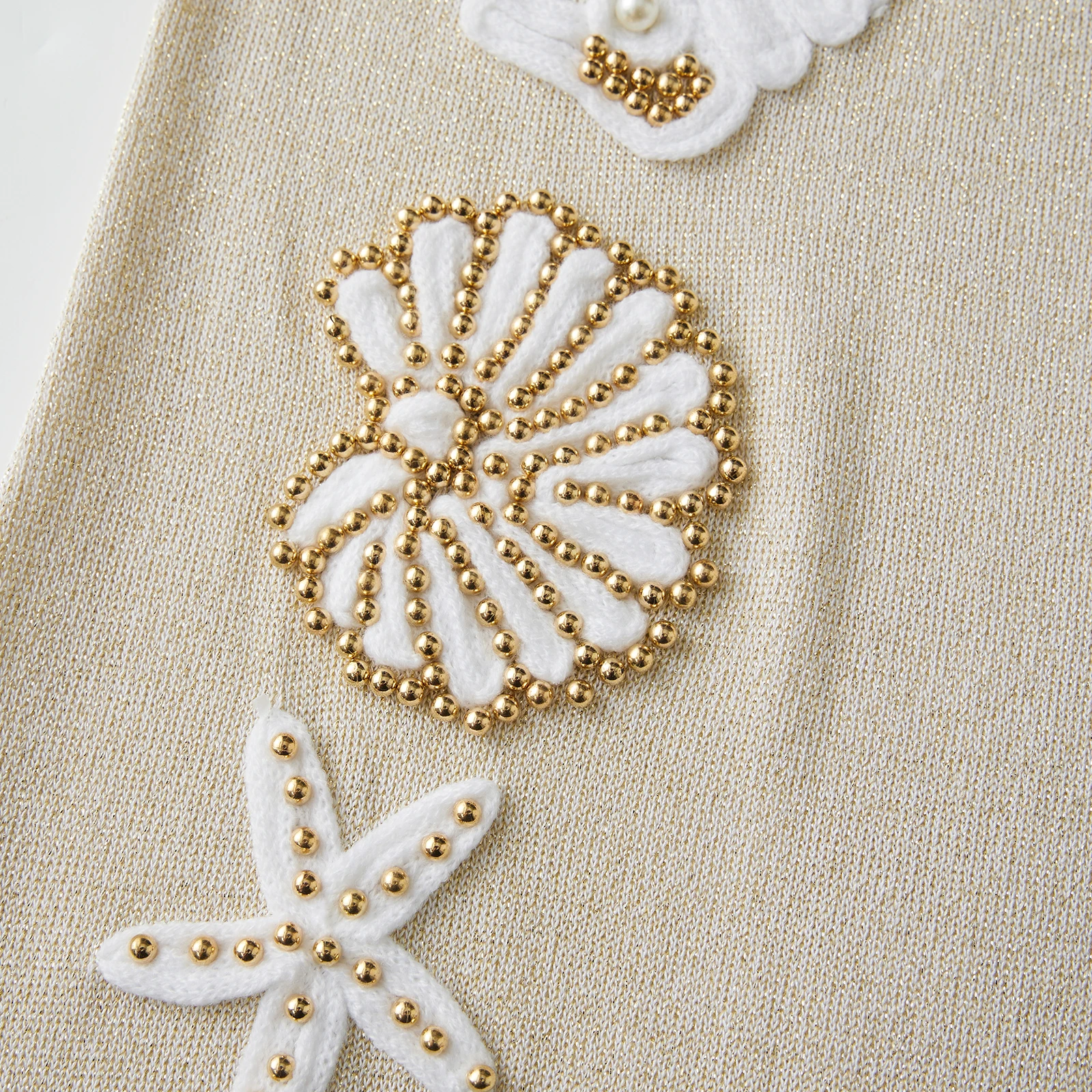 Shell starfish embroidery, glittery knit fabric, U neck, sleeveless; casual dress for women; Slim fit, ankle length, easy to show your charming curves, a perfect addition to your closet