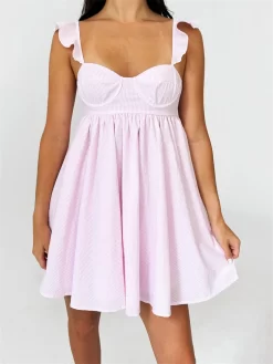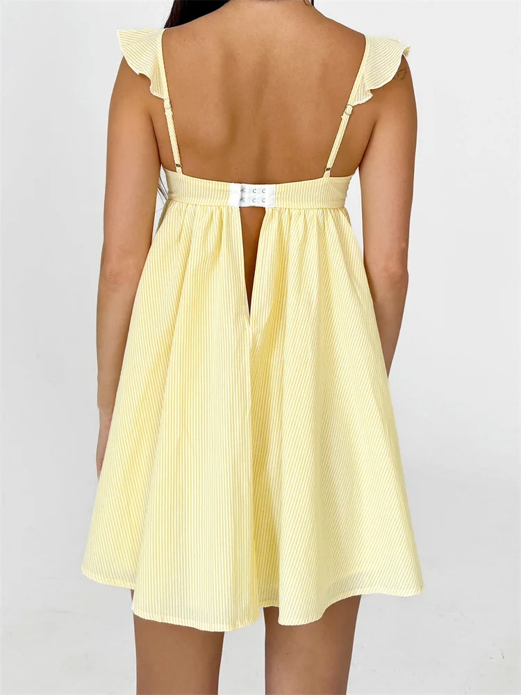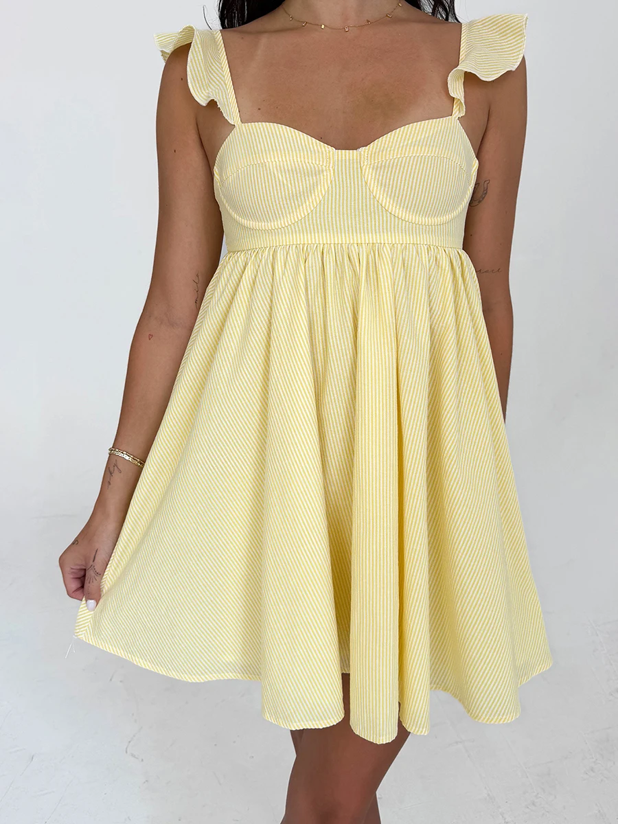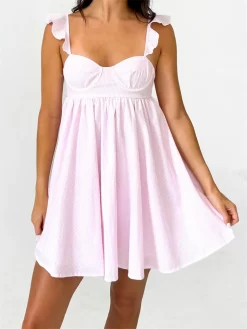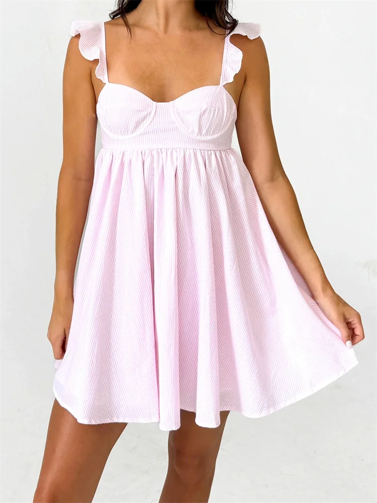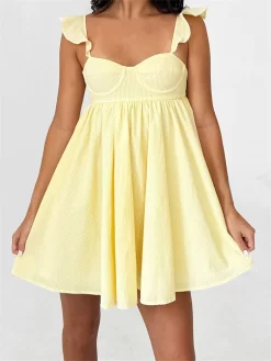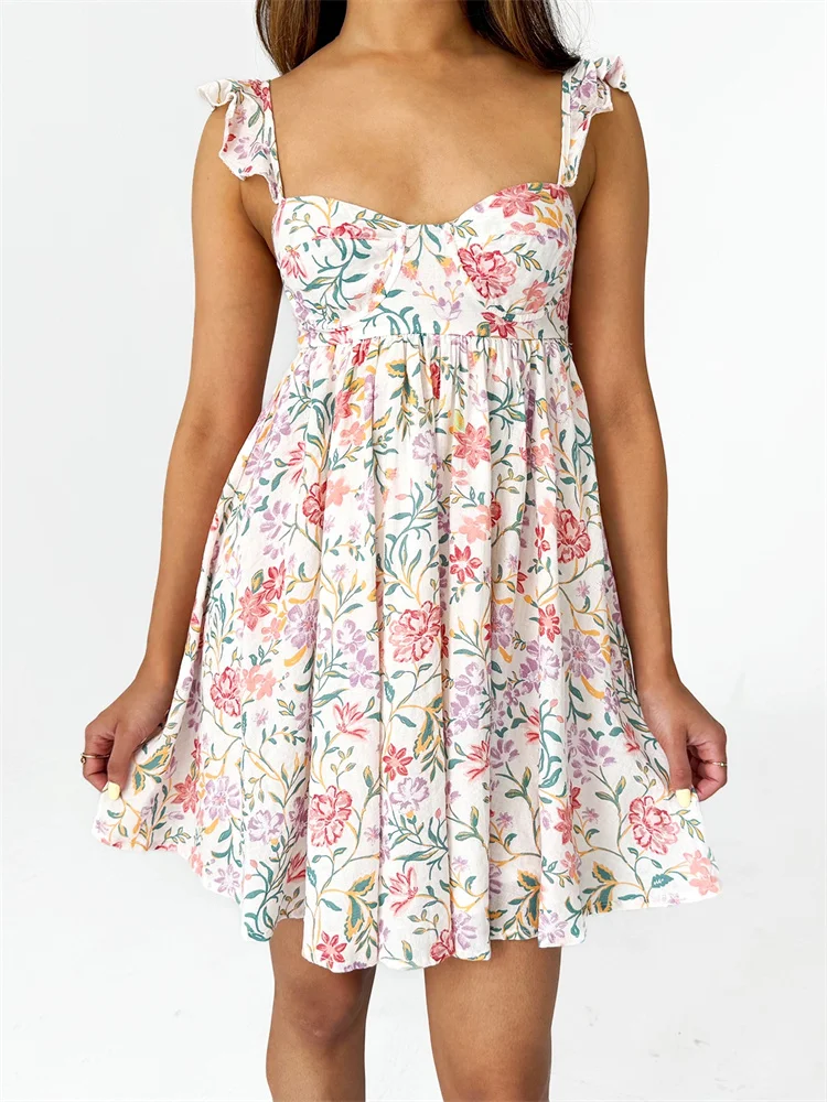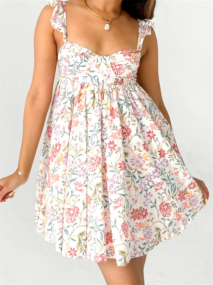 Women Summer Slip Dress Ruffle Sleeveless Corset A-line Dress Mini Dress Floral Solid Color Casual Loose Chic Sundress