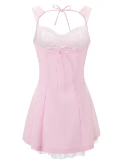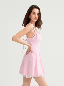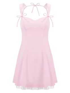 Women’s Summer Corset Mini Dress Fashion Sleeveless Bow Tie Strap Solid Color Tank Dress for Party Elegant Casual Sundress