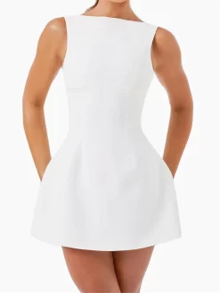 Women’s Summer Mini Tank Dress Sleeveless Open Back Solid Color Above Knee Dresses